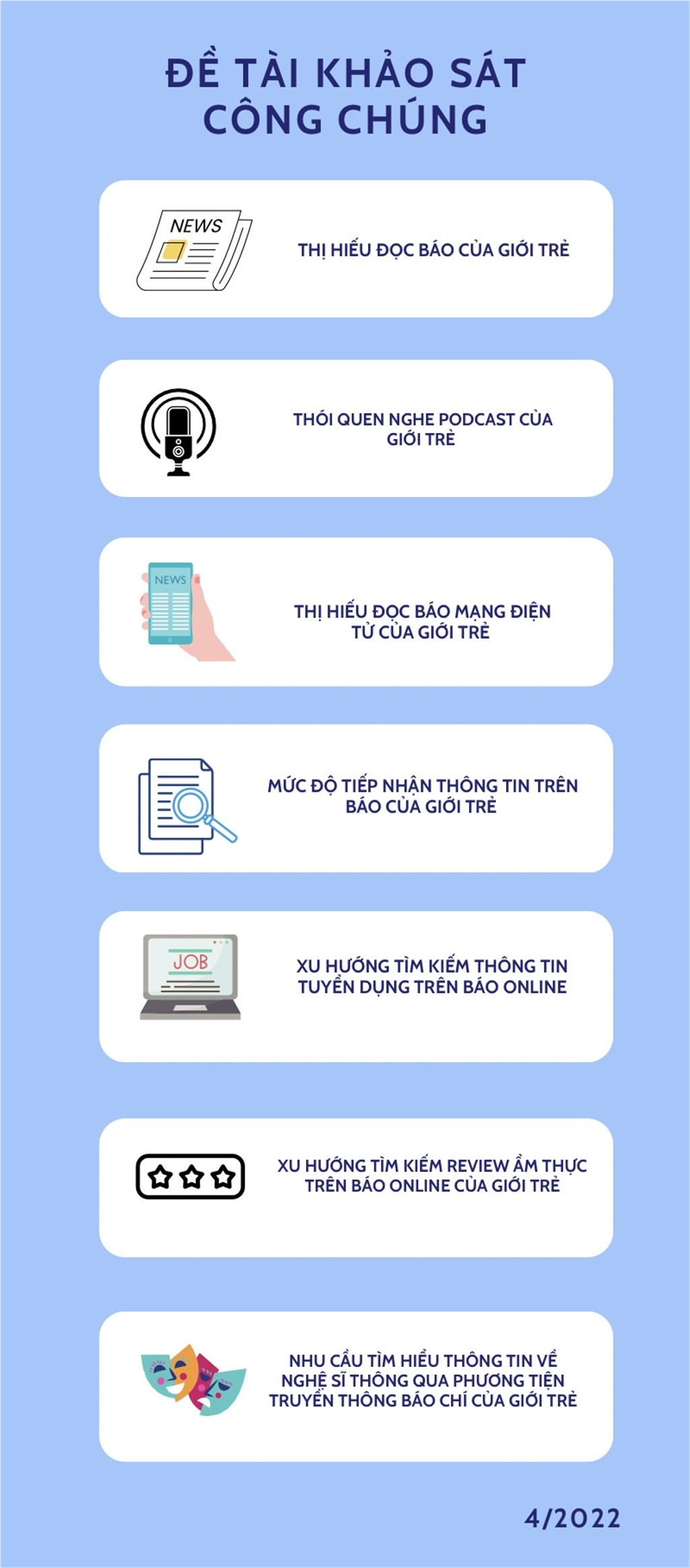 Qua lần khảo sát này của môn học Công chúng báo chí, tôi có thể nắm bắt được phần nào những suy nghĩ, chọn lựa của công chúng, hình dung được công chúng cần những thông tin gì, có những lợi ích gì từ việc đọc và theo dõi các loại báo chí. Những trải nghiệm và kiến thức đó sẽ giúp ích cho tôi rất nhiều trên con đường chinh phục ngành quan hệ công chúng mà tôi đang theo đuổi.