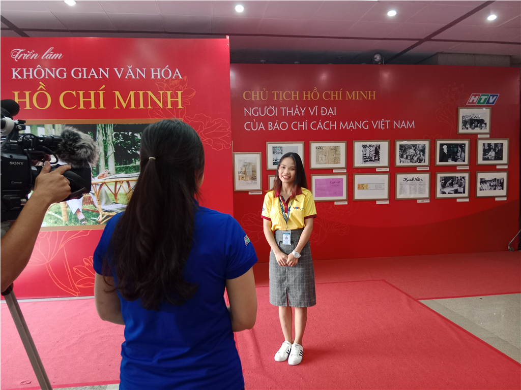 Nguyễn Như Quỳnh - Sinh viên báo chí Khóa 20 thực hiện phỏng vấn báo chí với điện thoại thông minh