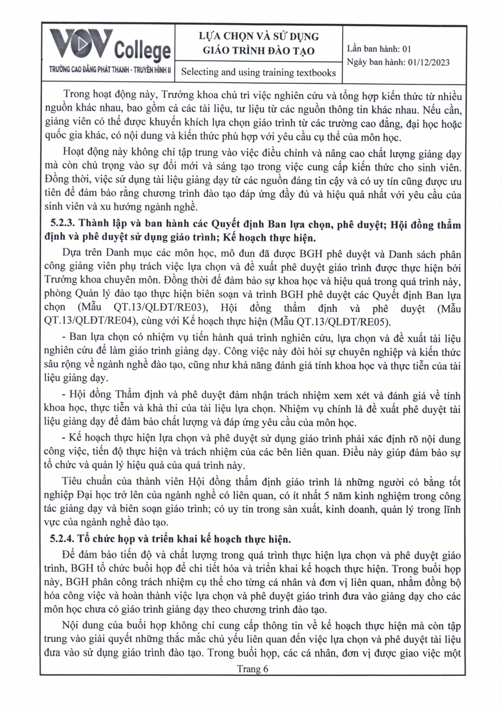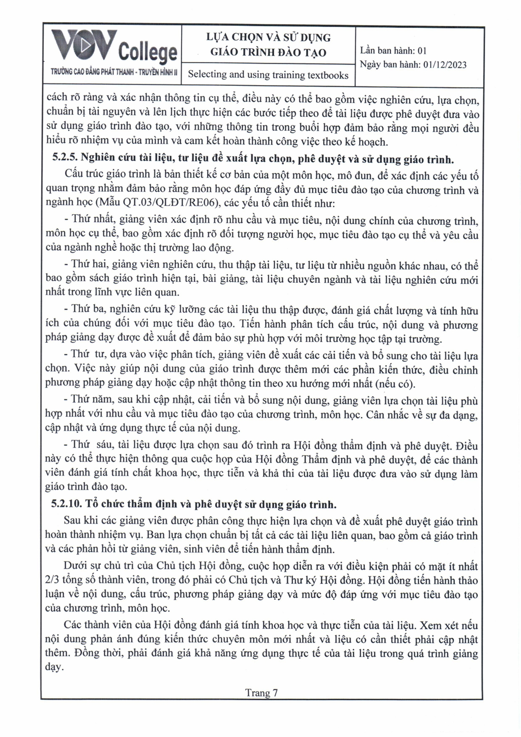 Quy trình lựa chọn và sử dụng giáo trình đào tạo (Tải về)