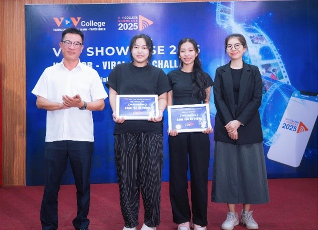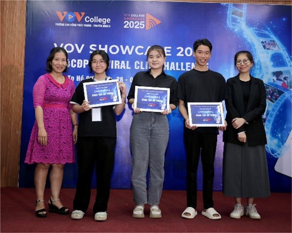 Anh Trần Văn Công – Cán bộ kĩ thuật kênh VOV GT TPHCM cùng sinh viên 21CDBC chụp ảnh lưu niệm